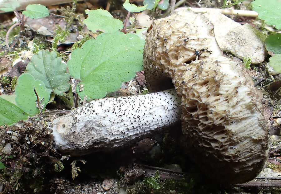 柄には黒い粒点が沢山付着しておりますが、傘というのはまだまったく開いておらず、辛うじて傘になっていくであろうものが形成されている、という感じである。