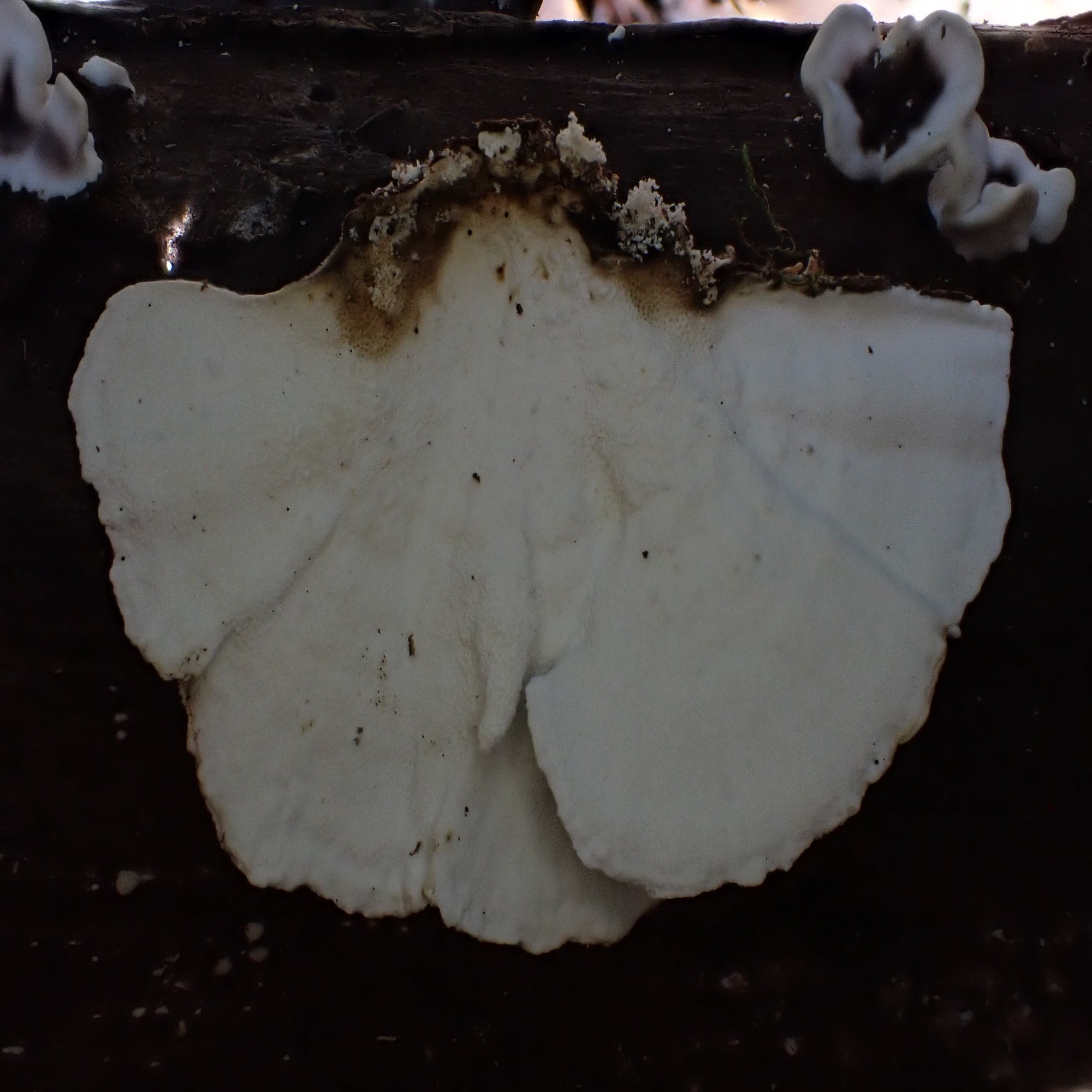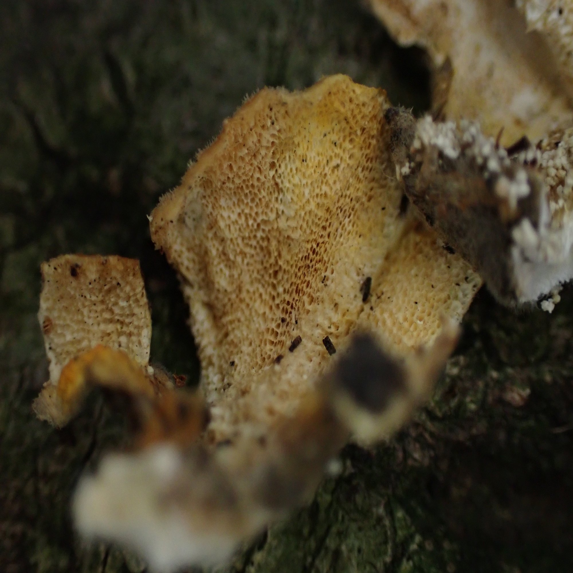 裏側は管孔(かんこう)になっていて、未熟なものでは白色をしていますが成長すると次第にクリーム色、褐色へと変化していきます。