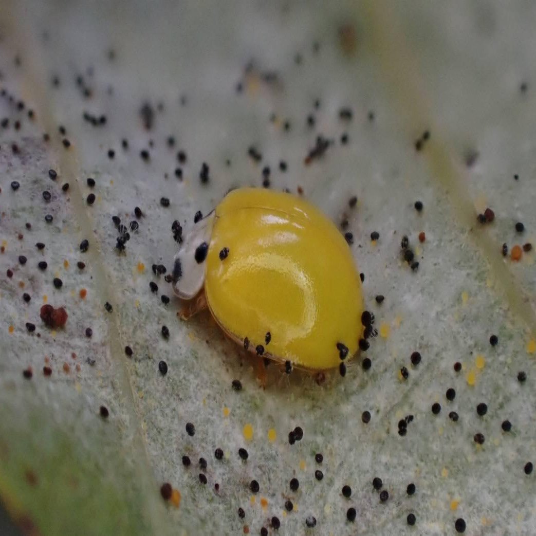 クヌギ裏うどんこ病菌を食べるキイロテントウ。普通に職場で見つけました。